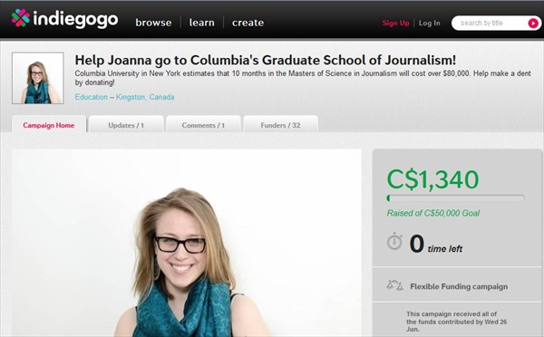 Queen’s University student Joanna Plucinska started a campaign to raise 50,000 Canadian dollars for her tuition to Columbia Graduate School of Journalism.