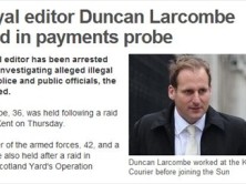 News Corp.-owned The Sun's royal editor Duncan Larcombe was arrested last week "on suspicion of making corrupt payments to public...