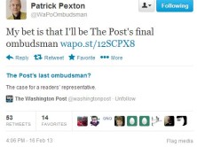 With about two weeks remaining on Washington Post's ombudsman Patrick Pexton's two-year term, the newspaper has yet to announce what it...