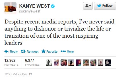 West also responded on Twitter to the fake stories, Mediaite noted. West tweeted thanks to Mandela “for your life’s work.” He went on:
