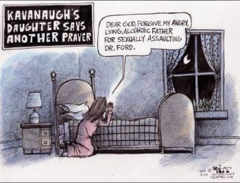 The cartoon showed Kavanaugh’s daughter saying, “Dear God, forgive my angry, lying, alcoholic father for sexually assaulting Dr. Ford.” Kavanaugh mentioned during his Senate testimony last month his daughter said “We should pray for” Dr. Christine Blasey Ford, who accused him of attempting to sexually assault her in high school.