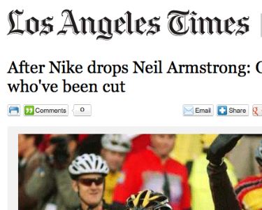 “[For the Record, 9:59 a.m. Oct. 18: The headline on an earlier version of this post referred to Neil Armstrong. As the text of the post says, Nike cut ties with Lance Armstrong.]“