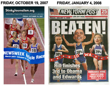 Given the current state of our national press, it’s sometimes difficult to know whether the work of media ethicists is making an impact.  Well, if the cover image of the New York Post about the results of the Iowa caucus is any indication, at least one of Gotham’s tabloids is starting to notice  iMediaEthics.