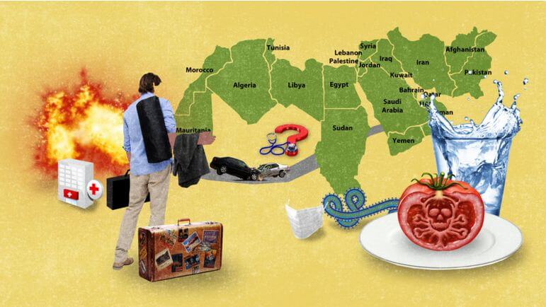 “The original version of this post contained a map illustration intended to represent the countries of the Middle East and North Africa, which poll respondents identified as the region presenting the greatest risk to travelers and expatriates in 2016. The map had a number of errors. The countries of Cyprus, Israel and Turkey were either not shown or not labeled; the label for ‘Palestine’ should have read ‘Palestinian territories’; and Afghanistan and Pakistan were mistakenly included. NPR apologizes for these errors.”
