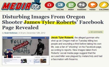 The headline for a Mediaite story about a shooting-suicide in a Portland, Oregon shopping mall last week contained a glaring error — the suspected shooter’s name was wrong.