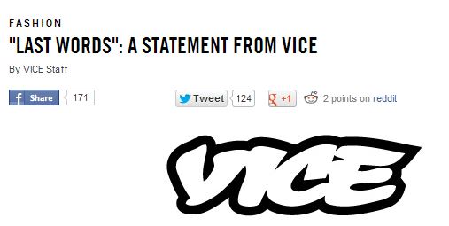 In place of the pictures, Vice posted a three-paragraph statement saying that the magazine’s intention was “to create artful images.”