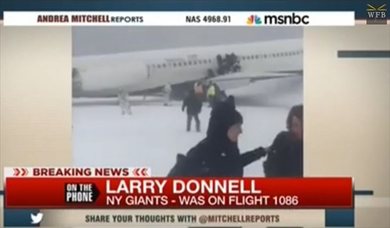 MSNBC was duped by a prankster posing as New York Giants tight end Larry Donnell when reporting on Delta 1086, which skidded off the runway at LaGuardia airport yesterday, Mediaite reported.