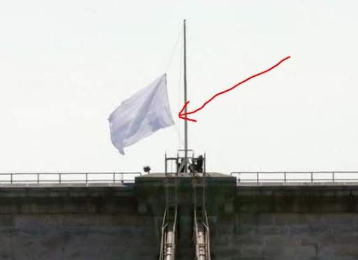 That caption is also incorrect because the flags weren’t replaced with white banners but in fact with bleached white American flags.