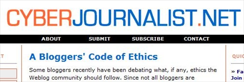 Editors Weblog questioned if bloggers should have a code of ethics like traditional journalists. According to Editors Weblog, Cyber Journalist recently created an ethics code for bloggers.