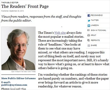 New York Times public editor Arthur Brisbane wrote Sept. 25 responding to a few reader questions and concerns.