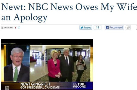 Newt Gingrich has called for NBC News to apologize for its anonymously sourced report that Gingrich’s wife is “to blame” for Gingrich’s staff members quitting in early June, Yahoo News reported. UPI quoted Gingrich as calling NBC News out for having “nobody on camera, nobody quoted by name” making the comments about Gingrich’s wife.
