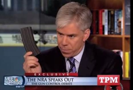After NBC’s David Gregory showed a “30-round gun magazine” last month on Meet the Press, there was some debate and an investigation over whether he would be charged for violating D.C. law on how many rounds a magazine can have. The magazine was empty, and used by Gregory during an interview with the NRA’s CEO Wayne LaPierre in response to the Newtown, Connecticut school shootings. Check out a video of the interview on the Washington Post’s website.