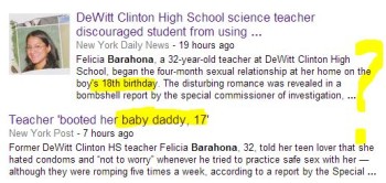 As an example, check out battling news stories from The New York Daily News and The New York Post. The topic: A now-fired Bronx science teacher Felicia Barahona and her alleged sexual affair with and pregnancy by a student.