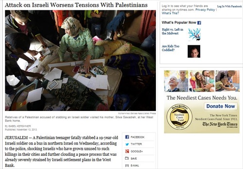The article, headlined “Attack on Israeli Worsens Tensions with Palestinians,” and reported on Atias’s death and Israeli-Palestinian negotiations.