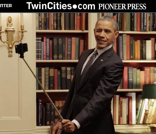 Minnesota’s St. Paul Pioneer Press made the disparaging remark in a photo slideshow caption that featured a picture of Obama from a series of images of the president making faces while using a selfie stick to promote sign-up for Obamacare insurance.