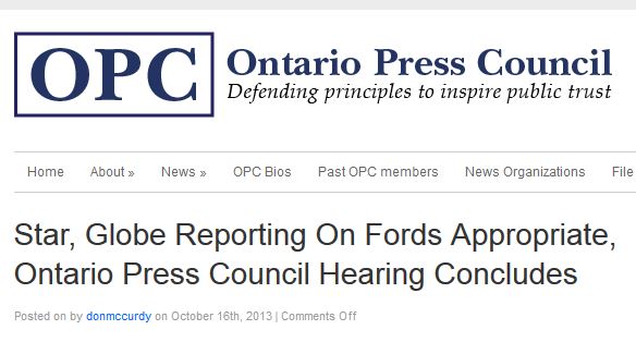 Central to the press council’s investigation were two stories: The first was the Toronto Star‘s May 17 report “Rob Ford in ‘crack cocaine’ video scandal,” and second, the Globe and Mail’s May 25 story, “Globe Investigation: The Ford family’s history with drug dealing.”
