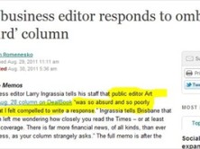 In his Aug. 27 column, New York Times public editor Arthur Brisbane criticized NYT's "financial news service" section, DealBook, and suggested the site...