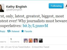 The Toronto Star's public editor Kathy English highlighted the importance of being careful with superlatives like the "first, only, most,...