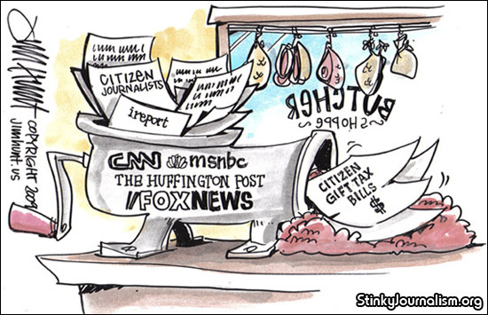 Joe Blow’s heirs, when reviewing his estate, would see a list of gifts given over his lifetime. Instead of just children and grandchildren, in the topsy-turvy world born of this new business model, commercial exploitation of free gifts of often valuable intellectual properties donated by citizen journalists, would also include the names of FOX News, CNN, MSNBC and Huffington Post alongside the names of the grandchildren. After all, the media have been crying poverty of late and firing journalists galore in cutbacks. Maybe this new business model is, in effect, a citizen journalist bailout for media companies. Just as it was when the federal government bailed out profit-seeking companies, citizens are the ones who end up unexpectedly paying for profit-seeking–but failing– corporate America.