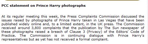 The UK Press Complaints Commission issued a statement on the 3,800 complaints filed over the UK Sun’s publishing naked photos of Prince Harry.