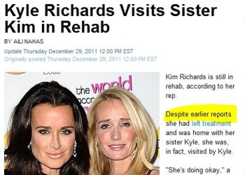 Instead of a full-fledged correction, the magazine added this line to a follow-up report –“Despite earlier reports she had left treatment and was home with her sister Kyle, she was, in fact, visited by Kyle” — which doesn’t indicate that People “originated the misinformation.” Or, at the very least, People is trying to create its own “reality” about this TV star.