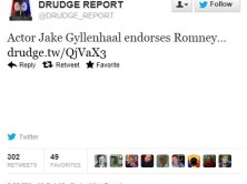 The Drudge Report linked to a fake Twitter account purporting to be Jake Gyllenhaal, Mediaite reported. The post directed to...
