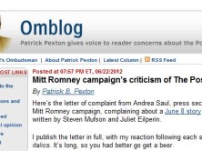 Mitt Romney's presidential election campaign outlined a series of complaints about the Washington Post's reporting, the newspaper's ombudsman reported June...