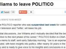 Politico and its suspended White House correspondent Joe Williams "mutually decided that the best step for him is to begin...