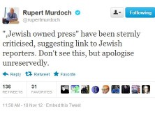News Corp. CEO Rupert Murdoch apologized after making controversial comments about Gaza, the Hollywood Reporter reported. In a Nov. 18...