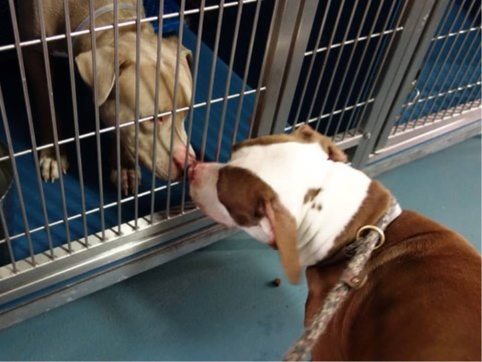 Claim: The “Last Kiss” photo was showing a “goodbye” between pit bull siblings before death separated them on Jan.31.