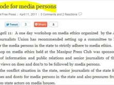 An Indian journalists group is calling for a code of ethics to be established, Kangla Online reported. The group --...