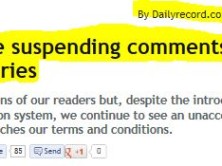 The Scottish Daily Record announced Oct. 12 "we are suspending comments on football stories" because of "an unacceptable level of...