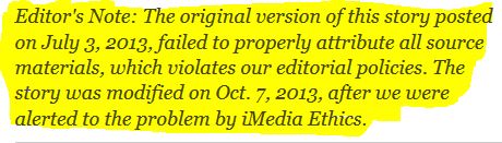 “Editor’s Note: The original version of this story posted on July 3, 2013, failed to properly attribute all source materials, which violates our editorial policies. The story was modified on Oct. 7, 2013, after we were alerted to the problem by iMedia Ethics.”
