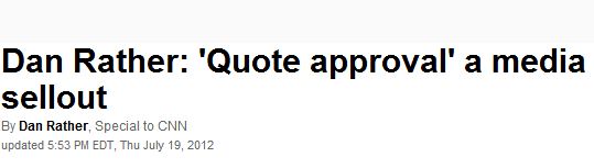 Dan Rather weighed in on the New York Times’ report writing that quote approval is “a jaw-dropping turn in journalism, and it raises a lot of questions.” For example, Rather asked: “Can you trust the reporters and news organizations who do this? Is it ever justified on the candidate’s side or on the reporter’s side? Where is this leading us?”