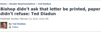 The Plain Dealer’s Diadiun explained that “it’s likely editors would have agreed” to publish the letter in full to begin with “if the bishop had made a specific request.” He added that “refusal” might be the wrong word because “a refusal infers a request and a consequent rejection.” That said, he still argued that the newspaper should have reported on the letter earlier because of its newsworthiness.