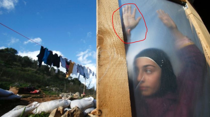 Why is there an extra thumb in this Reuters photo of a Syrian girl in a refugee camp? If you look closely at the girl’s right wrist, you’ll see a mysterious thumb wrapped around it. The thumb, of course, belongs to someone else, but no other part of the other person is visible.