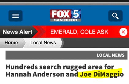 Fox 5 San Diego mis-identified kidnapping and murder suspect James DiMaggio as Joe DiMaggio, according to Jim Romenesko.