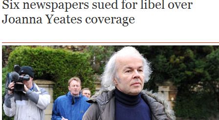 A man arrested and later cleared in the December murder of UK woman Joanna Yeates has filed libel and invasion of privacy lawsuits against six UK newspapers — the Sun, the Daily Mirror, the Daily Star, the Daily Express, the Daily Mail and the Daily Record, reported the Guardian’s Roy Greenslade.