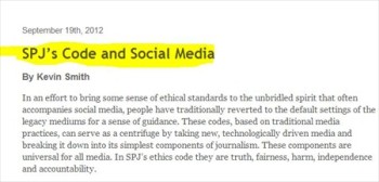 Society of Professional Journalists ethics chair Kevin Smith blogged Sept. 19 about applying the group’s ethics code to social media.