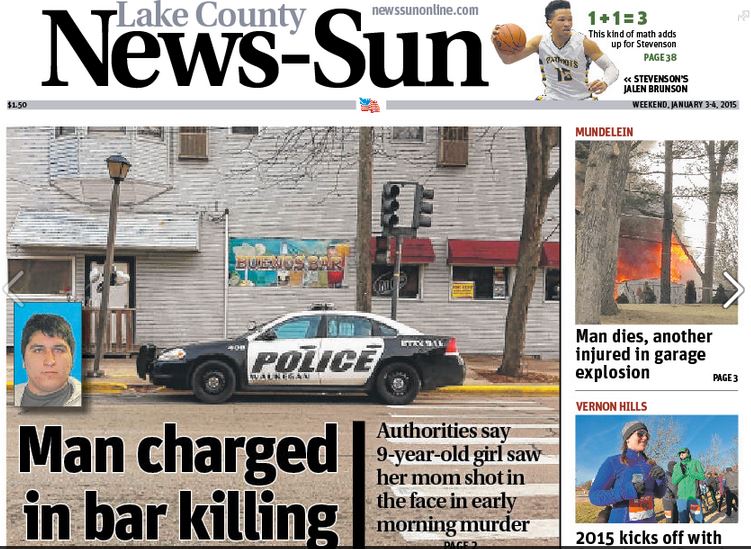 The News-Sun‘s June 9 and June 10, 2014 coverage included a photograph of Brown, “identifying him as Jamal Johnson, the suspected shooter of a Waukegan man, the suit said,” according to the Tribune. Johnson and two others was charged with first-degree murder over the 2013 death of Mutassem Ahmad Abdelaziz, the Tribune reported. Johnson was found guilty