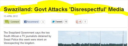 Reporters without Borders’s 2011-2012 Press Freedom Index ranked Swaziland 144 of 179 countries. The Media Institute of Southern Africa’s Swaziland Chapter weighed in on the detained journalists, saying the group “condemned the manner of the journalists’ detention,” according to All Africa.