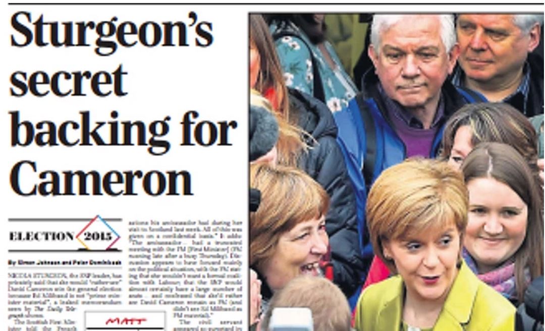 “The disclosure undermines public claims made by Miss Sturgeon this week that she wants to build a ‘progressive’ alliance with Ed Miliband and other left-wing parties to keep the Conservatives out of office.”