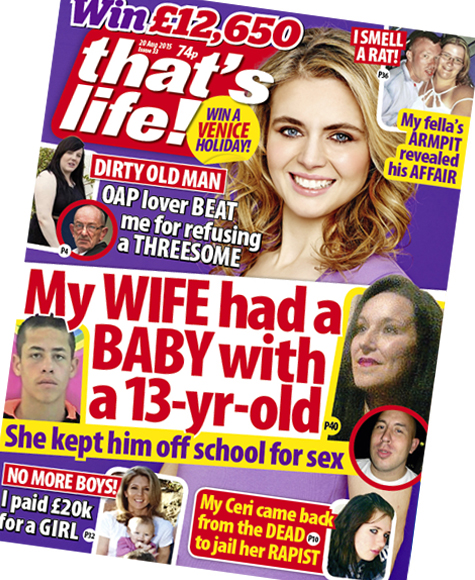 That’s Life is published by Bauer Publishing and describes itself as “Britain’s leading real-life magazine,” publishing “100% true stories.”