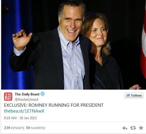 The Daily Beast had reported this morning: “Exclusive: Romney Running for President.”