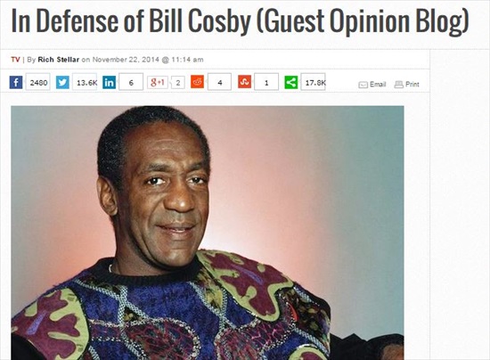 Stellar apologized in a note atop his original article Nov. 23. “The furor over my recent blog that was misconstrued as defending Bill Cosby was unexpected, but not unwarranted,” Stellar wrote.