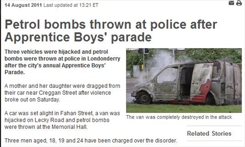 According to a Dec. 13 BBC News report, the three networks must give “all unbroadcast television footage related to disturbances during the Apprentice Boys parade.” The court reportedly thinks the tapes could include “relevant evidence” to help police determine who was involved in the “disturbances.” After the annual parade, “three vehicles were hijacked and petrol bombs were thrown at police,” according to an August 2011 BBC report.