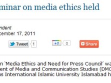 International Islamic University Islamabad held a seminar on "Media Ethics and Need for Press Council," Pakistani newspaper The News reported....