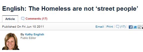 The Toronto Star’s public editor, Kathy English, took up the issue of describing the homeless as “street people” in a recent column.