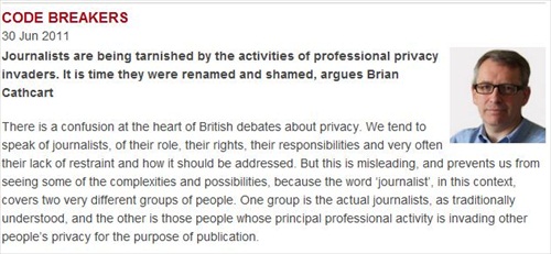 The Guardian’s Roy Greenslade highlighted a recent article by Brian Cathcart for Index on Censorship, in which Cathcart identifies “the existence of two journalisms — one that acts in the public interest and the other that panders to public prurience.”