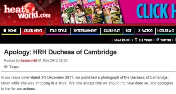 UK magazine Heat apologized to Kate Middleton for a December photo of her shopping, the Press Complaints Commission reported.